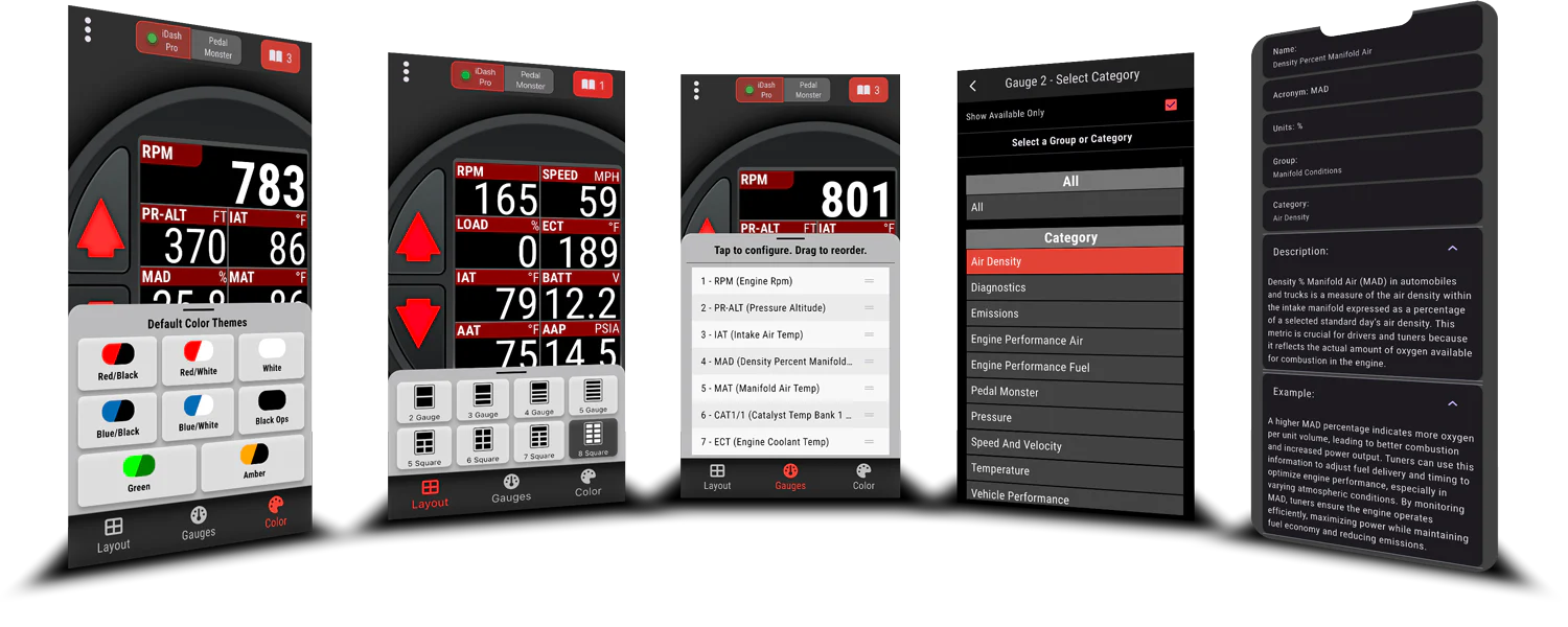 Konfigurieren, steuern und überwachen Sie PedalMonster mit der Banks Mobile App für iDash. Die Drehmoment-Reaktionskurven können während der Fahrt geändert werden, ohne das Fahrzeug anzuhalten.